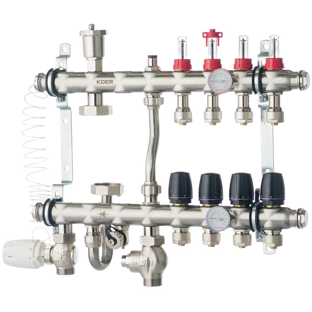 Коллектор со встроенным смесит. узлом Koer KR.S1012-4 1"х4 SUS304 и евроконусами 3/4-16 (KR2937)