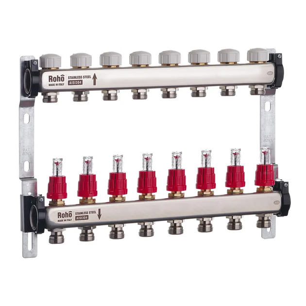 Колектор з витратоміром та термостатичними клапанами Roho R804-08 - 1"х 8 вих. [RO0040]