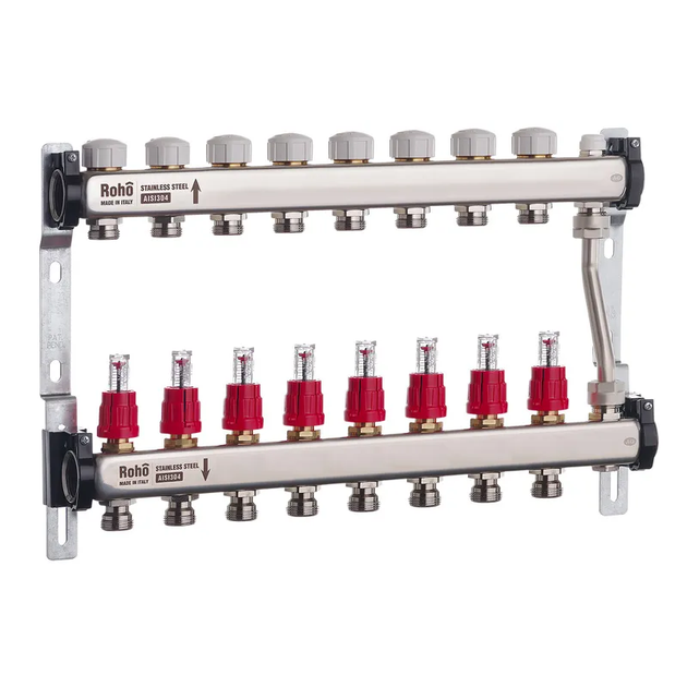 Колектор з витратомірами та термостатичними клапанами з байпасом Roho R814-08 - 1"х 8 виходів (RO0051)