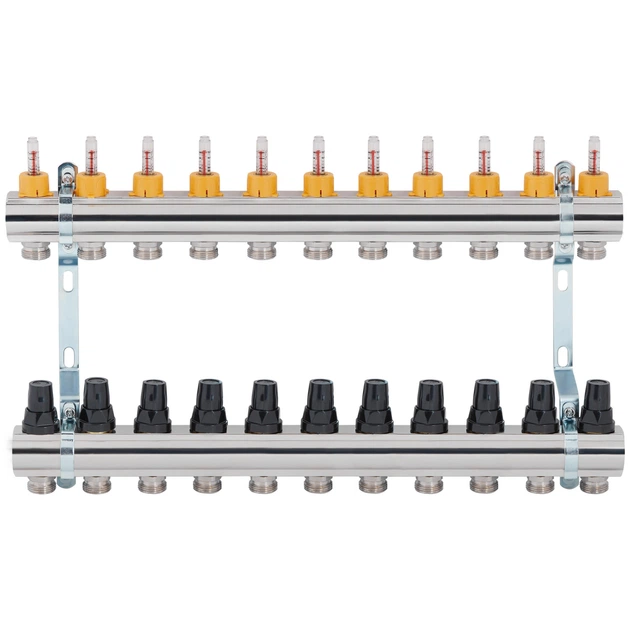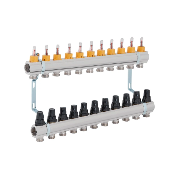 Колектор для теплої підлоги SANDI FORTE 11 контурів з витратомірами 1"/3/4" SF001W11
