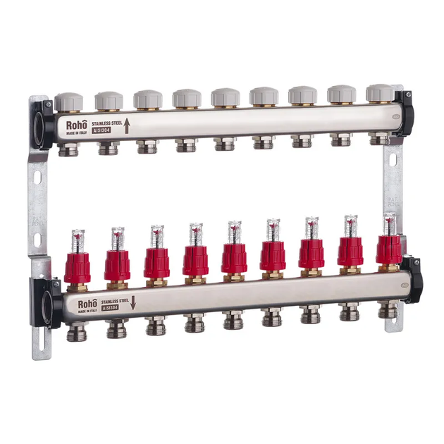 Коллектор с термостатическими и запорными клапанами Roho R805-11 - 1"х 11 вых. (RO0065)