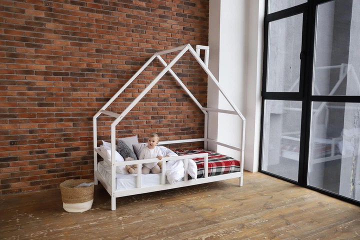 Дитяче ліжко будиночок Монтессорі BUSY WOOD на ніжках Модель 2 120х60 см біле