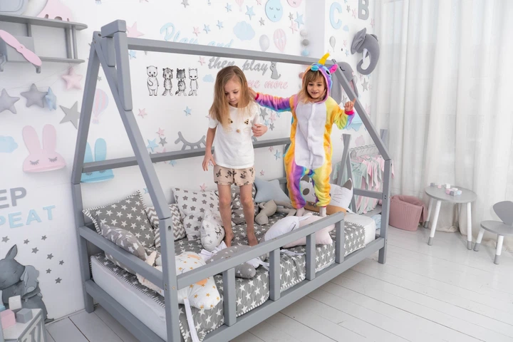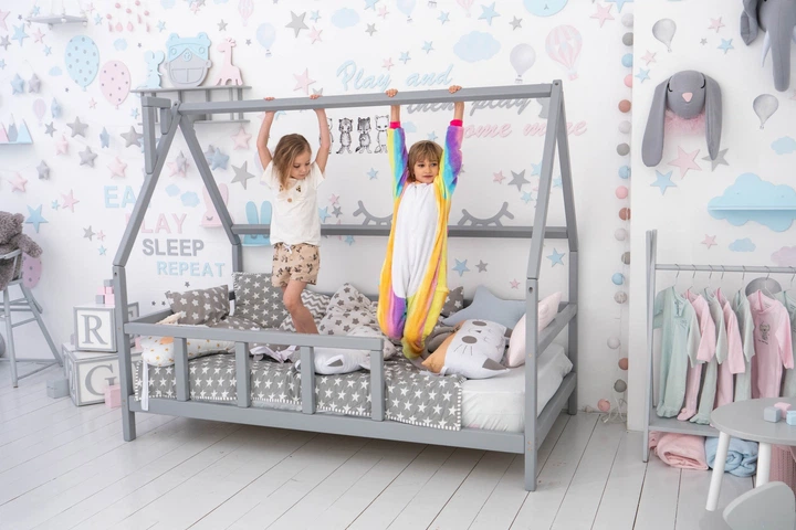 Дитяче ліжко будиночок Монтессорі BUSY WOOD на ніжках Модель1 200x90 см сіре