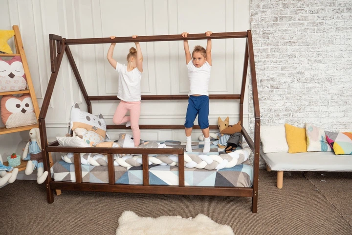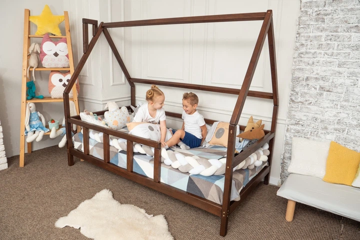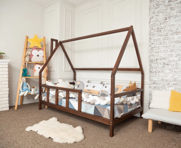 Дитяче ліжко будиночок Монтессорі BUSY WOOD на ніжках Модель1 190х90 см темне дерево