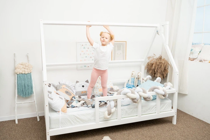 Дитяче ліжко будиночок Монтессорі BUSY WOOD на ніжках Модель1 200х140 см Білий