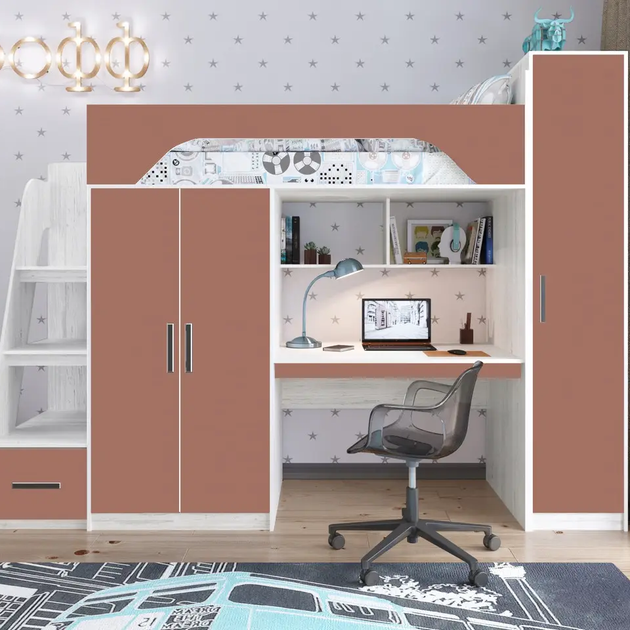 Ліжко з письмовим столом, шафою для одягу та відкритими полицями MS730