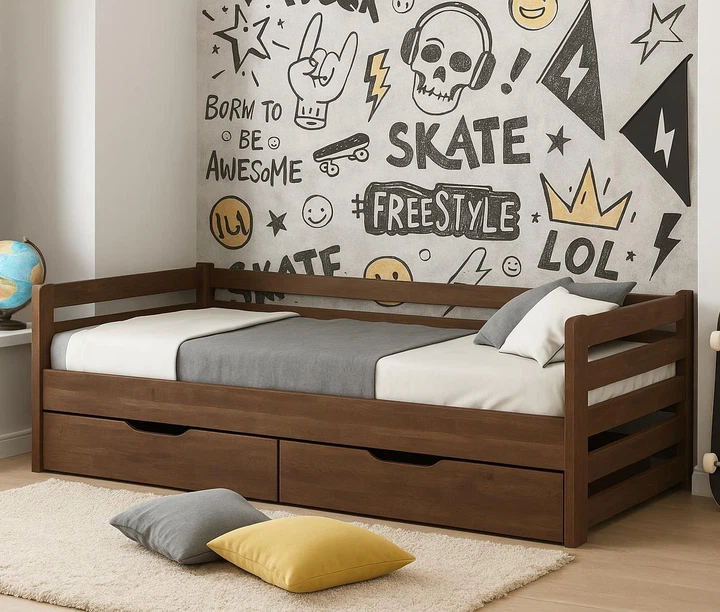 Дерев'яне дитяче ліжко - диван Lux - 6, темний горіх