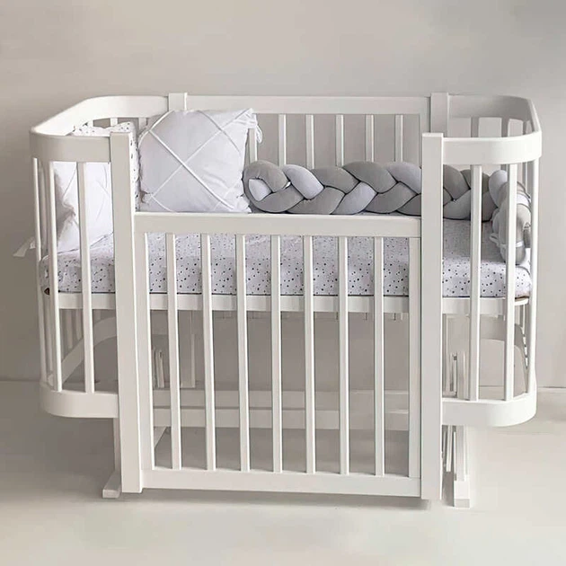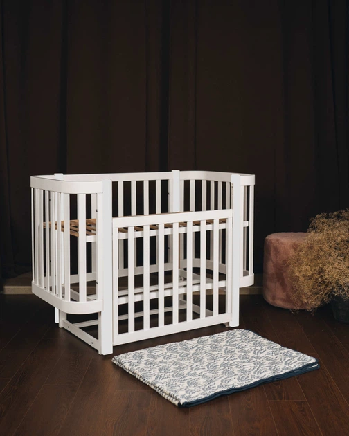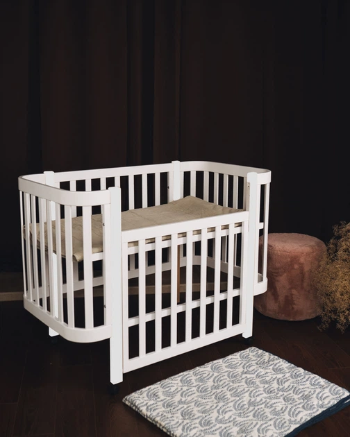 Ліжечко дитяче "мія" (1) бук, шарнір-підшипник, опускна боковина (біле+біла стійка)