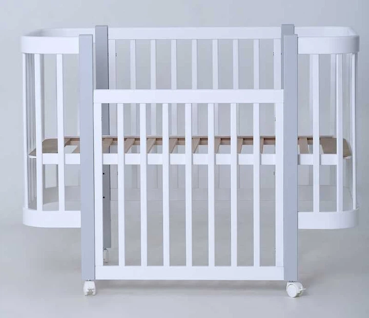 Ліжечко дитяче "мія" (1) бук, шарнір-підшипник, опускна боковина (біле+сіра стійка)