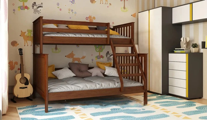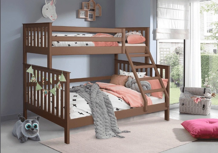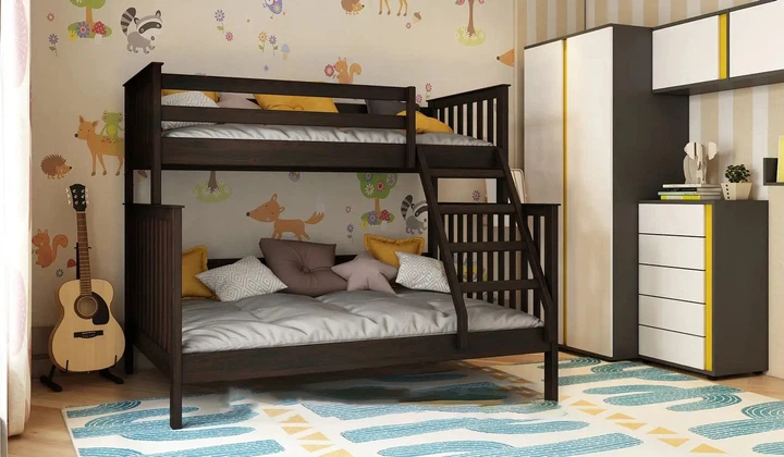 Ліжко двоярусне з натурального дерева сосна Остін 120х80х200 горіх темний Stemma