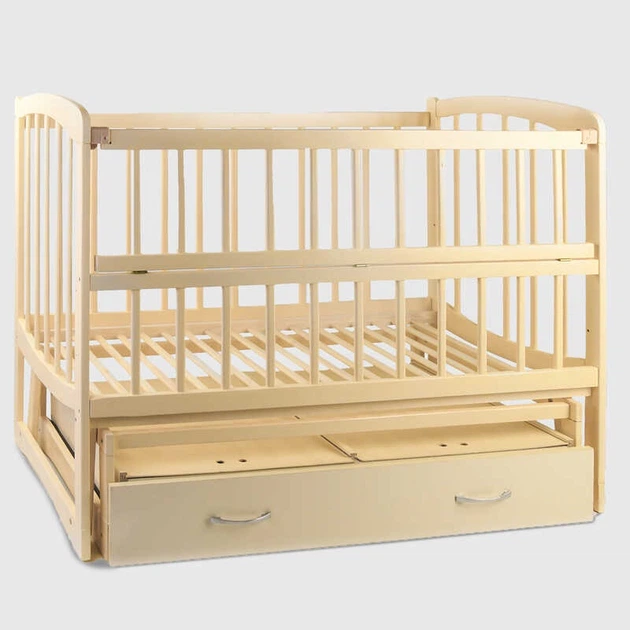 Ліжечко дерев. маятник + шухляда - відкидний борт "Сон" с-78133 (1) вільха - колір слонова кістка