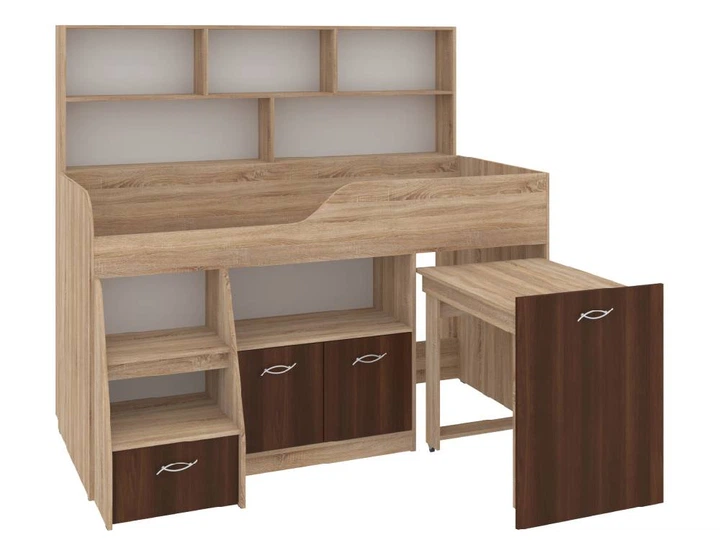 Ліжко-горище Навігатор Піхотін Дуб сонома/горіх темний