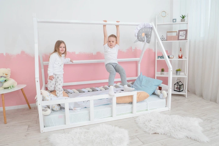 Дитяче ліжко будиночок Монтессорі BUSY WOOD на підлозі Модель 1 190х90 см білий