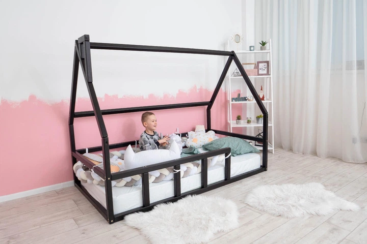 Дитяче ліжко будиночок Монтессорі BUSY WOOD на підлозі Модель 1 190х90 см чорний