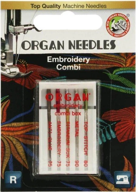 Голки швейні для вишивання ORGAN Embroidery Combi-Box для побутових швейних машин блістерна упаковка 5 штук
