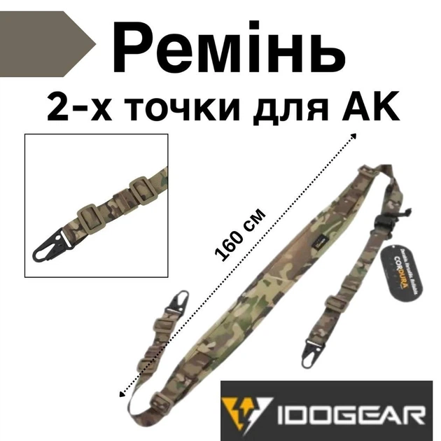 Ремінь тактичний матеріал кордура на дві одну точку, двоточковий, мультикам для ак 47 74