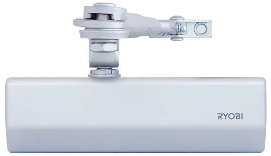 Ryobi DS-1554P - дверний доводчик накладного типу, з паралельною тягою з фіксацією відчиненого положення дверей. Призначений для керування великими зовнішніми та внутрішніми дверима. Повністю контролює весь цикл зачинення дверей з роздільно-регульован