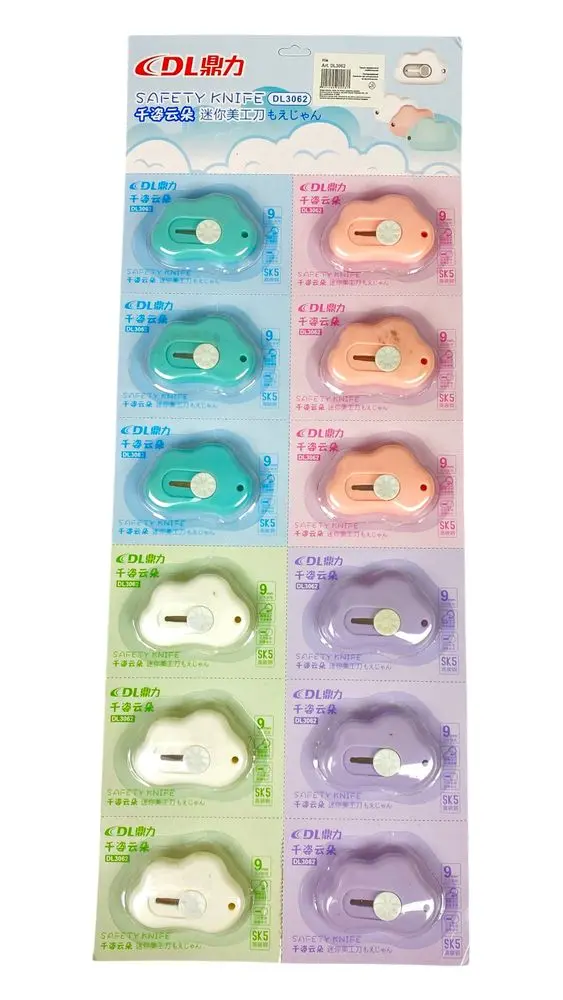 Ніж канцелярський міні, 9 мм, Хмаринка, 12 шт.