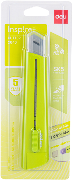 Ніж канцелярський Deli 2040 18 мм Пластиковий з захисним ковпачком Зелений (6935205358028)