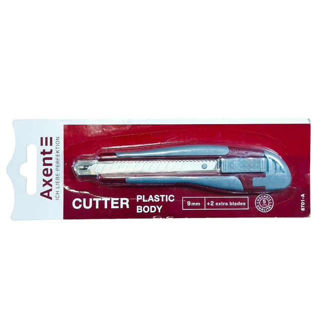 Ніж канцелярський Axent 6701-A, з металевими направляючими, гумові вставки, лезо 9 мм (5799)