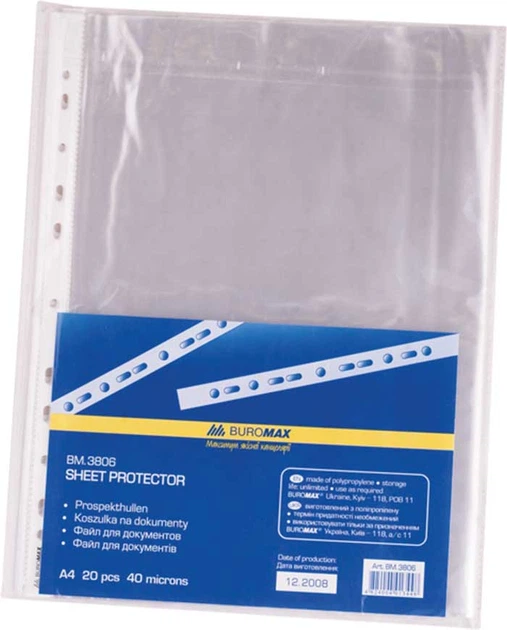 Файл для документів, А4+, 40 мкм, Buromax, 100 шт., BM.3805