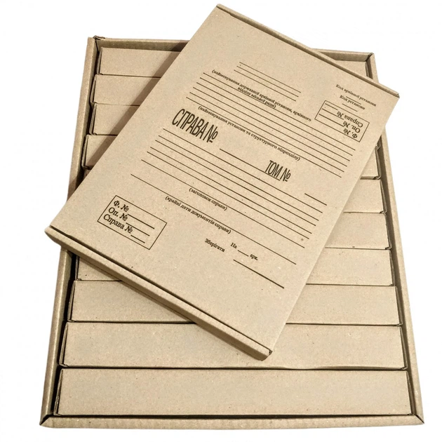 Комплект "АрхівПро+": Архівний Гофро-Короб 410*330*235 мм + 10 Самозбірних Архівних Папок формату А4 (корінець 40 мм)