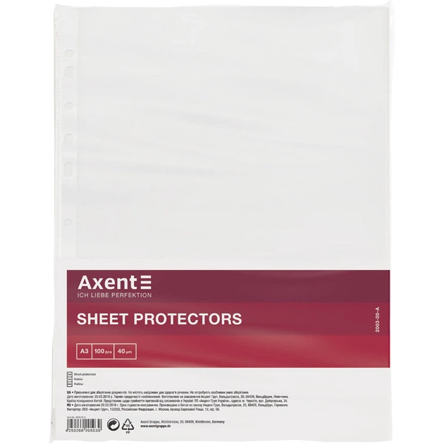 Файл А3 глянсовий, 40мкм.(за 100шт.), вертикальний, 2003-00-А, AXENT