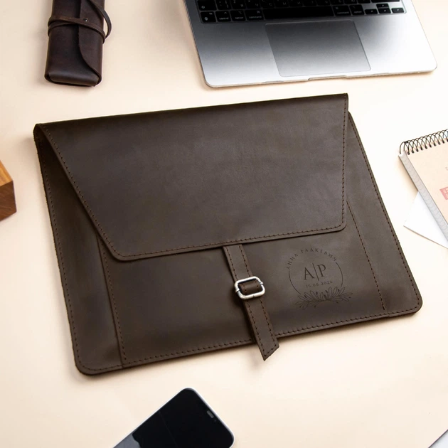 Шкіряна папка для керівника, шкіряна папка з ім'ям, папка зі шкіри з гравіюванням, Brown, Malina Leather
