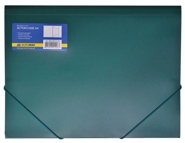 Папка на гумках, BUROMAX, А4 глянцева не прозора, пластик, зелена (BM.3913-04)