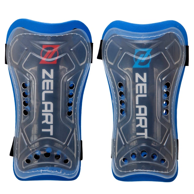 Щитки футбольні Zelart FB-4877 (пластик, EVA, l-19см, розмір М, Чорний-блакитний)