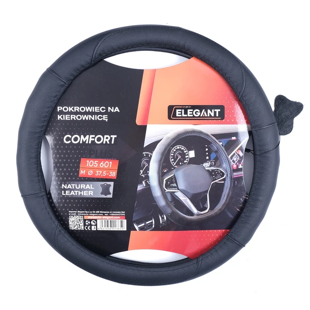 Чохол обплетення на руль Elegant Comfort M 37-39/10,5 см обхват Шкіра Гладка та Перфорація Чорна (EL105 007)