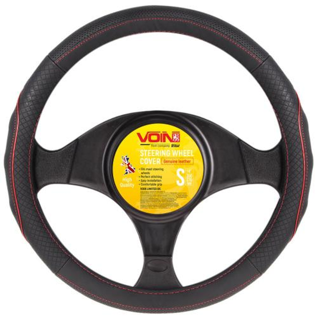 Чохол на кермо VLOD-L282 BK/RD S чорно-черв./БО/перф/шкіра