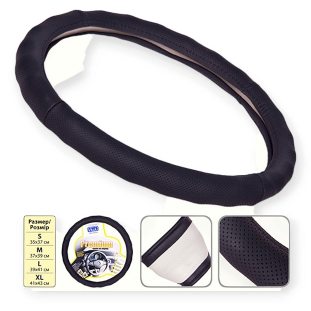 Чохол на кермо VLOD-L06 BK XL чорний/БО/шкіра один шов
