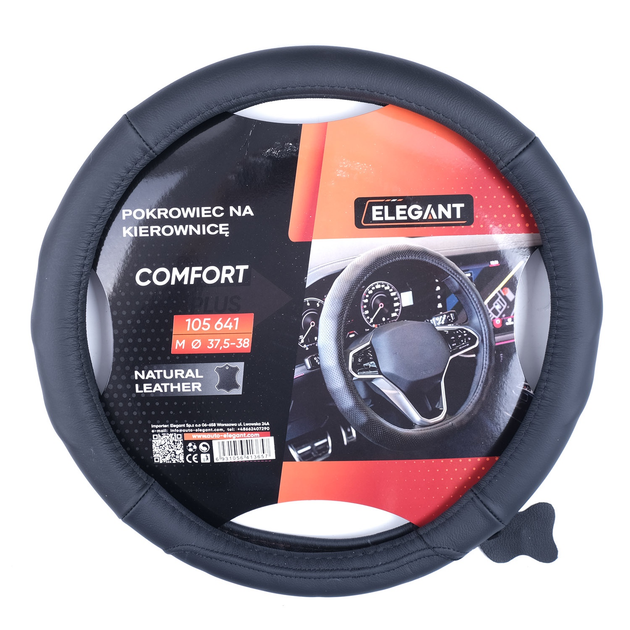 Чохол на кермо шкіра "М" (37-38см) чорний Elegant 105641 масаж -Шкіра