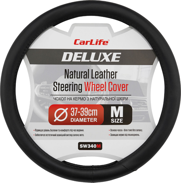 Чохол на кермо Carlife шкіряний для захисту від ковзання та зносу в автомобілі TRSW234L