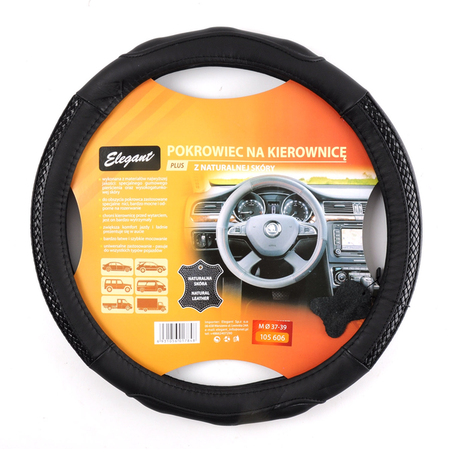 Чохол на кермо шкіра "М" (37-38см) чорний Elegant 105606 масаж, кіска