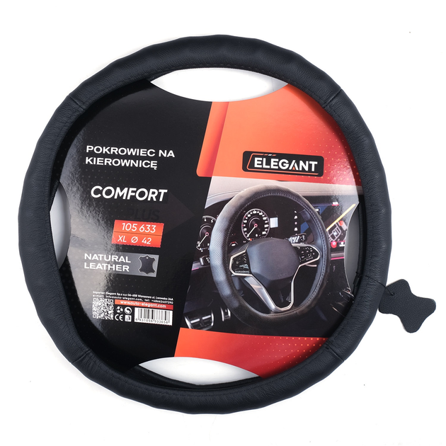 Чохол на кермо шкіра "XL" (42см) чорний Elegant 105633 масаж гладкий