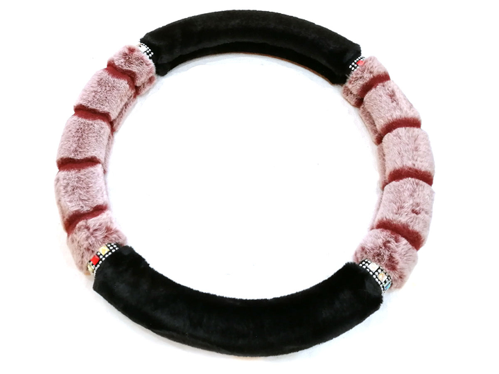 Чохол на кермо авто хутряний бордовий смугастий 37-39 см
