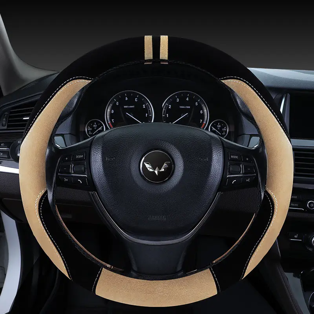 Каркасний чохол на кермо з алькантари (М)37-39 см, Бежевий з чорним