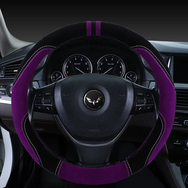 Каркасний чохол на кермо з алькантари (М)37-39 см, Фіолетовий з чорним