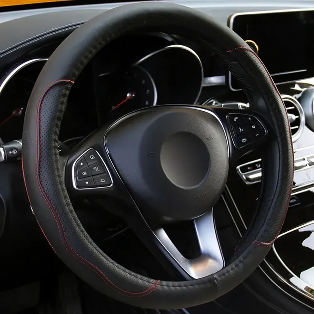 Чохол на кермо 38 см, чорний з червоною прошивкою 1108-6