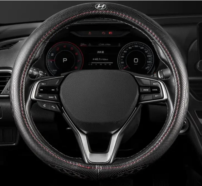 Чохол на руль DLCar для автомобіля Hyundai із натуральної шкіри Чорний
