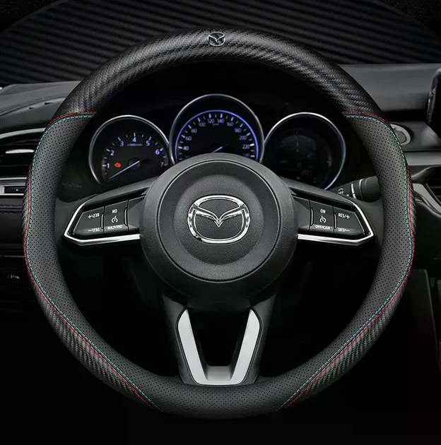 Чохол для керма DLCar Nappa Carbon для автомобіля Mazda із натуральної шкіри