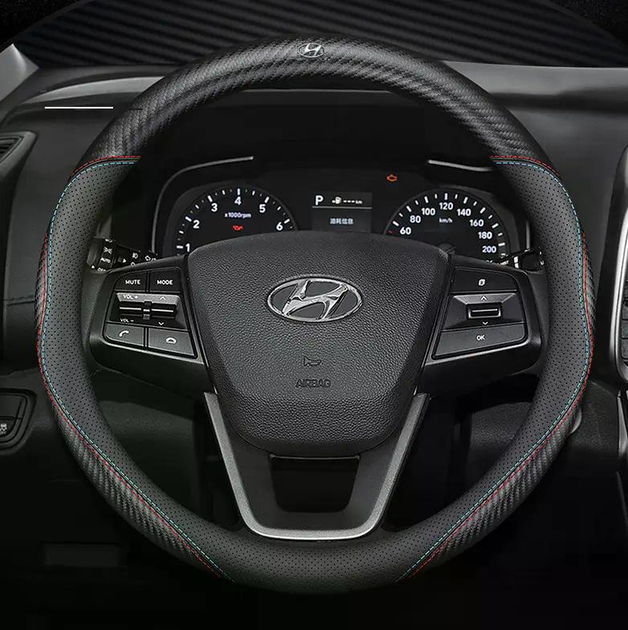 Чохол для керма DLCar Nappa Carbon для автомобіля Hyundai із натуральної шкіри