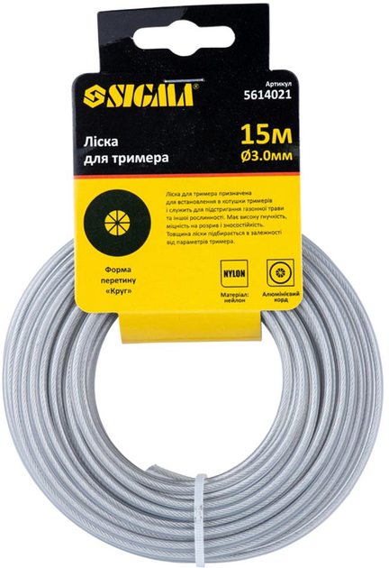 Волосінь для тримера Sigma з алюмінієвим кордом 3.0 мм 15 м (5614021)