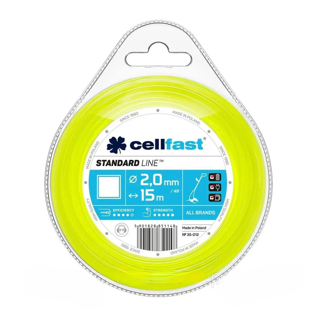 Ліска для тримера Cellfast Standard ПР35-012 квадратна, 2,0 мм, 15 м