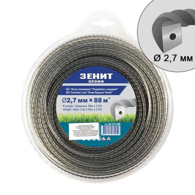 Жилка косильна Зеніт "ПРОФІ" "Подвійна з кордом" 2,7 мм x 88 м (40727088)