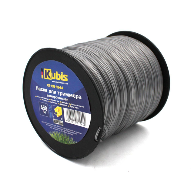 Волосінь для тримера Kubis з поліаміду армованого форма зірка діаметром 2.4 мм довжина 450 м Сірий