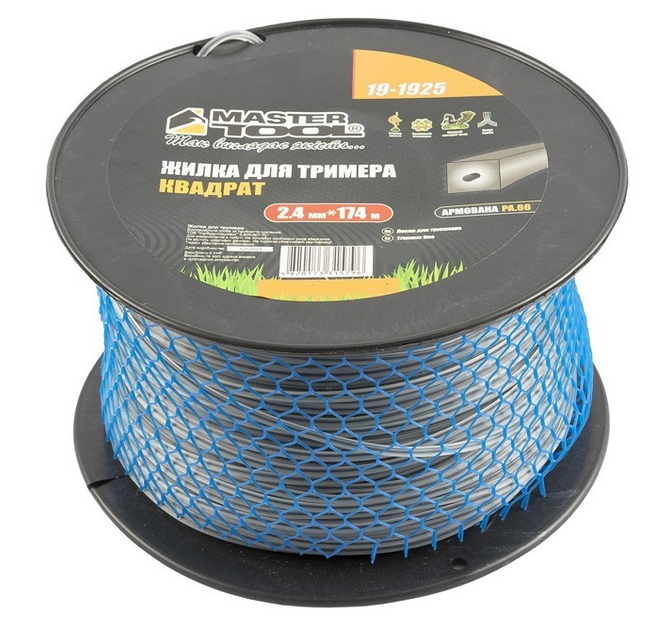 Жилка для тримера MASTERTOOL КВАДРАТ АРМОВАНИЙ 2,40 мм, 174 м котушка (19-1925)