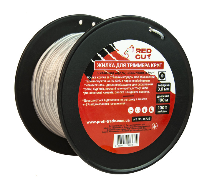 Жилка для тріммера Круг зі сталевим кордом, 3,0мм*100м у бухті "Red Cut" 35-15735